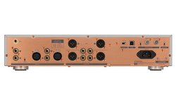出力端子はライン出力(ボリューム可変)用にXLR/RCAを1系統、USB-DACダイレクト出力(ボリューム固定)用ににXLR/RCAを1系統をそれぞぞれ搭載している。