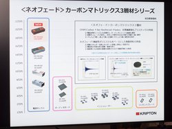 機能性ポリエステル「ネオフェード」をCFRP(カーボン繊維強化プラスチック)で挟んだ、オーディオ用素材「<ネオフェード>カーボンマトリックス3層材」を筐体の5面に採用。三菱ガス化学と共同開発したというこの素材により不要振動をスムーズに吸収すると共に、カーボンの電磁シールド効果でノイズも低減するという。