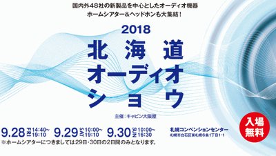 北海道・札幌市のオーディオ・ホームシアター専門店 キャビン大阪屋は、国内外48社が参加する「2018 北海道オーディオショウ」を、9月28日(金)から9月30日(日)の3日間に渡り、札幌コンベンションセンターにて開催する。