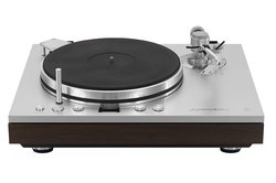 トーンアームにはJELCO製のユニバーサル型スタティックバランスS字トーンアーム「SA-250」を搭載。シンプルな操作感と高いクオリティに定評があるモデルで、ラックスマン仕様にシルバーカラーを換装している。なお、ダストカバーは別売(価格50,000円/税抜)。カムサポート式ヒンジを装備した4mm厚アクリル製のものを用意する。