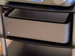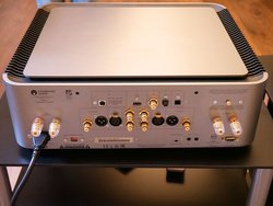出力が100W/8Ω、200W/4Ω。周波数帯域は3Hz-80kHz、S/N比は93dB以上(1W/8Ω)。入力端子はXLRバランスとRCAアンバランスで、出力はスピーカー端子とループアウト。本体の外形寸法は150×460×405mm、質量は23.6kg。