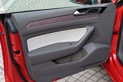そのうえで、レザーシートのカラーバリエーションにチタンブラック、ミストラルグレー、バレンシアブランの3色を設定。デコラティブパネルにはウッドパネルを使用し、専用フロントバンパーやシルバーのドアミラーといった専用アイテムを採用するなど、インテリア/エクステリアの質感にこだわり、R-Line Advanceとの違いを演出している。