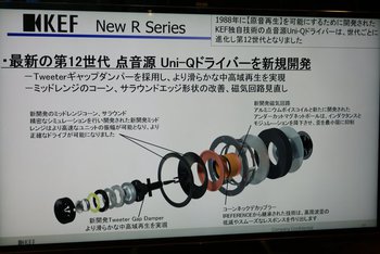 今回の新Rシリーズの目玉となるのが、KEFの基幹技術のひとつである同軸ドライバーユニット「Uni-Q」が刷新されたこと。Rシリーズは第12世代となる新Uni-Qドライバーを同社製品として初搭載した(従来機は第11世代を搭載)。