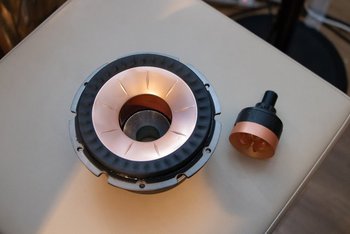 また、磁気回路の形状を見直し、Referenceシリーズと同様の磁気回路を採用。アルミニウムボイスコイルと新開発されたアンダーカット・マグネットボールによってインダクタンスと変調を抑えて、歪みを最小化したとのこと。コーンのネック部のデカップラーもReferenceシリーズから継承された。