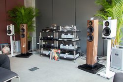 エラックからは待望の400シリーズとなるスピーカーシステム、VELA 400.2シリーズの「VELA FS 407.2」「VELA BS 403.2」(関連ニュース)を披露。ブースのシステムのメインスピーカーとして用いていた。