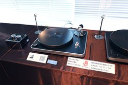 ブースでは期間中、製品試聴デモや評論家を招いた講演などイベントを多数実施しており(詳細スケジュール)、いずれの回にも、PD-151を用いたアナログ再生試聴を取り入れている。
