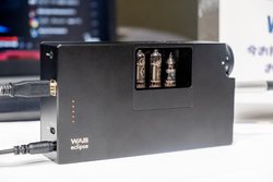 また、WOO Audioのバッテリー内蔵管球式ヘッドホンアンプ「WA8」(予想実売価格25万円前後)が展示され、手持ちのプレーヤーなどで試聴ができるようになっていた。