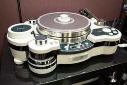 ブースで実施された試聴イベントでは、ステラの西川英章氏が本機の開発状況を説明。Air Force ZEROは、サスペンション機構の開発の遅れからTIASでの公開が間に合わなかったが、開発は順調に進んでいると語った。西川氏によれば、本機のターンテーブル部は質量は120kg。結果、フローティングベース部は合計320kg、メインベースを加えると合計520kgと、途方もない重量になる。駆動部には3層12極アウターローター型モーターを採用するが(関連ニュース)、このモーターのベースにすでに生産完了しているstuder製モーターを転用する関係で、Air Force ZEROは50台しか製造できないという。しかし、すでに世界で10数台の予約を受けているとのことだった。