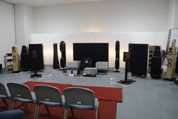 会場は、JR小倉駅からほど近いアジア太平洋インポートマートの3F。全部で6つの部屋が用意され、RoomA〜Dの4部屋はハイエンドオーディオのブース、RoomEはシアターシステム、一番広いRoomFではアクセサリーやソフトの販売、各メーカーごとのデモンストレーションが行われていた。