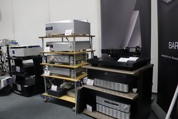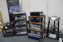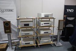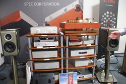 ナスペックは、オーディオ銘機賞で特別大賞を受賞したPlayback DesignのDREAMシリーズを中心に、ROKSANのアンプ、モニターオーディオのGOLD300をデモ。今回のフェアの中でも特に高品位な音を鳴らしていたブースのひとつで、セパレートSACDトランスポート+DACという非常に高価な組み合わせであるが、まさにスピーカーが消え、目の前に音だけが展開するような世界を実現。ROKSANのBLAKシリーズはプリアンプとCDプレーヤーは来年発売予定のフラッグシップモデルとのこと。