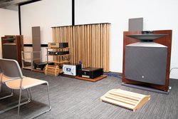 約300平米という広い会場には、JBLのフラグシップスピーカー「Project EVEREST DD67000」やマークレビンソンのシステムを中心に据えた試聴システムを用意。終日、出展メーカーのケーブルやオーディオアクセサリー、電源などを組み合わせたデモンストレーションおよび試聴会を実施する。なお、会場のルームチューニングは日本音響エンジニアリングが担当。会場の広さもあって、DD67000が朗々とならされていた。