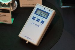 ブースではマイナスイオン測定器が用意され、実際に同ブランドの製品が大量のマイナスイオンを放出していることもアピールしていた。