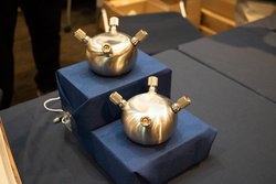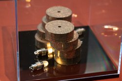 また、開発中の試作品も参考出展。従来のインシュレーターはフラットな音質傾向を基調としていたが、この試作品は高域をエネルギッシュにする音作りをあえて行っている。また、見る角度で様々な色合いを楽しめる独特の外観も特徴で、これを実現するために海外から複数の原料を調達しているという。現時点で発売時期などは未定となっている。