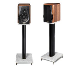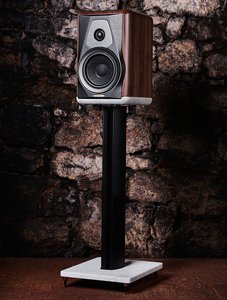 付属の専用スピーカースタンドは、支柱は黒アルマイト処理が施されたアルミニウム製で、内部には制振材が充填されている(ちなみに初代の専用スタンドの支柱は木製)。スタンドベース部にも、スピーカー本体底面部と同じカッラーラ産・白大理石を使用。支柱部と大理石製ベースは、スピーカーキャビネットと同様に金色のメタルインサートが用いられている。