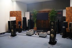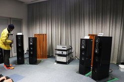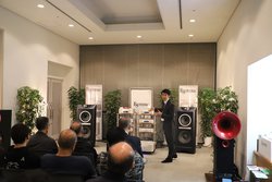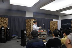 エソテリックは、昨年のインターナショナルオーディオショウで展示のみされていた“Grandioso”の「D1X」と「P1X」の初音出しを開催。時間ごとにアヴァンギャルドのスピーカーまたはタンノイのスピーカーを使って、2機種の技術解説なども行いながら試聴を進めていた。イベントは常に立ち見も出る盛況ぶりで、弩級のシステムへの高い関心をうかがわせた。