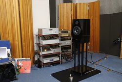 オーディオ卸業者、メースのブースでは、メース取り扱いのPhasemation、Harbeth、ORTOFON、ZONOTONE、GLANZなどを展開。Phasemationの試聴会ではTADの「EVOLUTION ONE」を使用し、フォノEQ「EA-350」、昇圧トランス「T-2000」などの新製品を中心にデモ。時間ごとにHarbethのスピーカーとも切り替えながらイベントを進めていた。