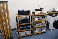 CDトランスポート「P1X」のは、新開発のメカドライブVRDS-ATLASを搭載。ドライブだけで13kgもの重量になると言うことだが、たんにリジッドなだけではなくアルミを使うなど振動を逃す設計もポイントになるという。また「D1X」は同社初のFPGAを組んだディスクリートDAC。非常に情報量が多く、CDの可能性をさらに押し拡げる製品として、じっくりと音を聴き込む参加者が多く見られた。