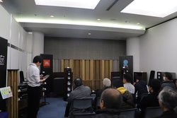 ディーアンドエムホールディングスは、1Fの2つの大部屋を使って展開。片方はマランツとB&Wを中心にしたピュアオーディオ向けのシステム、もうひとつはデノンやDALIを中心としたシアターやサラウンドのシステムを展開。ディーアンドエムホールディングスは毎年名古屋のイベントに出展しているが、特に今年の人の入りの多さに驚いたと言う。マランツのエンジニア、尾形好宣氏による聴き比べや技術解説も多くの人の耳を楽しませていた。