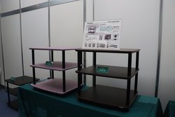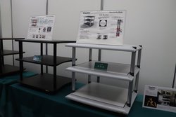 TAOCのブースには、新製品のラックが続々登場。「CLシリーズ」に、インテリアも意識したチョコレート色(Dark Brown Metatalic)と、パープル色(Light Purple)のラを新たに追加した。また、「ASR III」シリーズは、支柱上部をキャップとして取り外しができるようになっている。これは、テクニクスの大型アナログプレーヤーなどラックに収まりきらない大型製品を設置するために組み合わせるためにボードを追加できるというもので、開発が進められているという。