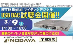 MYTEK製品のMQA/ハイレゾ試聴イベント、のだや宇都宮店にて3月9日開催