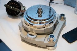 このモーターは、高精度メタルベアリングとエアーベアリングにより面振れが数ミクロン以内という高精密回転を実現。そして、フライホイール効果による高イナーシャ、エアーベアリング効果による高S/Nなプラッター駆動を可能とした。