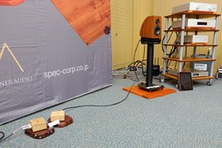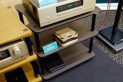 タオックは新オーディオラック「XLシリーズ」を出展。脚部を新設計したことが特徴で、支柱と棚板の接点にハイカーボン鋳鉄ピラースタビライザーを追加。また棚板そのものも中央に振動エネルギーを熱エネルギーに変換する制振シートを埋め込むなどして改良を行っている。4月下旬ごろの発売を予定し、価格はまだ未定とのこと。