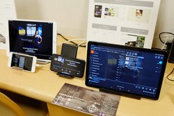 アイ・オー・データ機器は、SFORZATOのネットワークプレーヤーが対応したLAN DAC機能との “Diretta” による接続をPCレスで行うデモを参考展示として実施。操作は4月上旬にリリースとなるコントロールアプリ「fidata Music App」のAndroid版を用いて行われた。