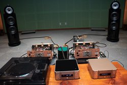 短時間ながらマランツ試聴室でM-CR612のサウンドを聴くことができた。試聴は「M-CR612とM-CR611の比較」「M-CR612で標準接続とバイアンプ接続の比較」「M-CR612で標準接続とパラレルBTL接続の比較」の3つが行われた。