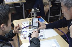 両端の端子がしっかり装着できたら、導通や極性、ショートがないかの確認をオヤイデ電気のスタッフがテスターを手に一人一人の席を回って実施した。特に問題のある例はなく、皆さん無事に組み上げることができたようだ。