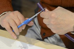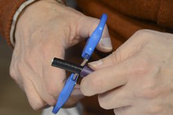 はじめにケーブルのシースと絶縁体の被覆を剥く作業となるが、よく切れる万能バサミ「ホーザンのN-838ヘビースニップ」を用いて行うことがこの講習会のポイント。よく切れるだけに、慣れない人はシースだけでなく絶縁体も一緒に切ってしまったり、導体も切れてしまった人もいたようだが、そんな時はオヤイデ電気のスタッフがフォローに入り、最小限の剥き直し作業を施して再チャレンジ。初めての時には難しいかもしれないが、コツをつかめば便利に使いこなせるだろう。