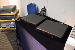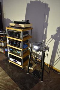ステラ/ゼファンのブースではTechDASの最高峰「Air Force One Premium」をはじめ、SMEの「Model30MK2」や「Synergy」といった3機のアナログプレーヤーが林立。エイ・アンド・エムはAIR TIGHTブランドから新登場の出力管別売仕様のパワーアンプ「ATM-300R」を中心にプリアンプ「ATC-5」を中心に、TRANSROTORのアナログプレーヤー「ZET3」でアナログ再生を堪能できるシステムとなっていた。