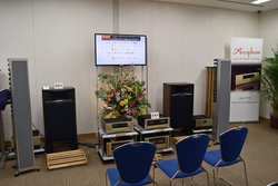 アキュフェーズは新製品のステレオパワーアンプ「P-4500」やモノラルパワーアンプ「A-75」、プリメインアンプ「E-480」を中心に単独ブースでのデモンストレーションを実施。「A-75」のブリッジ接続の解説などマニアックな内容も混ぜ込んだイベントを行った。