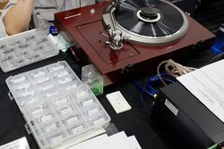 18日の12時30分からは、当社音元出版が主催するMCカートリッジの比較試聴イベントが開催。13モデルほどのカートリッジ、それもそのほとんどが18万円超えの価格帯の注目製品ということで、それを一斉に試聴できる機会に多くの来場者が集まった。