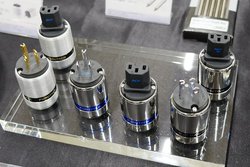 会場2階には各社がブースを並べる大部屋が用意されている。フルテックは、同社最新製品として、銀メッキ仕様のFI-48M NCF(Ag)、ロジウムメッキ仕様のFI-48M NCF(R)、ゴールドメッキ仕様のFI-46M NCF(G)という電源/インレットプラグを用意。同社が手掛けるNCF製品において、金メッキと銀メッキを施したモデルは今回が初めてとなる。