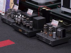 オーディオデザインからは、昨年末から1,000,000円で受注を開始した、プリアンプとしての機能も内蔵するMM/MCフォノアンプ「DCEQ-1000」(関連ニュース)が、サンバレーからは、組み立てキットという形で販売される真空管パワーアンプ「SV-S1628D」(129,000円〜/税抜)や「SV-1616D」(80,000円〜/税抜)などの真空管アンプが出展。また、沖縄の知名オーディオは、専用アンプとセットになった円柱状の無指向性スピーカーを出展。専用アンプの回路にははんだ付けの代わりに電気溶接が用いられ、音質への影響を排除しているのだという。