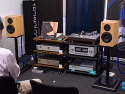 SL-1500Cは評論家や開発者が登壇する試聴会でも用いられた他、来場者からトーンアームの高さ調整やオートリフトの仕組みなど製品に関する質問がつぎつぎと寄せられ、注目を集めていた。