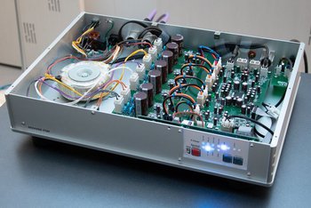一方で電流出力方式は、DACチップ内にはD/A変換部のみがあり、D/A変換部からの電流出力を電圧出力へと変換するアンプ(I/V変換アンプ)を外部に用意する必要がある。そのため、メーカー側はI/V変換アンプを自ら手がける必要があるが、設計の自由度は大幅に増す。また、I/V変換回路をDACチップの外部に備えることで、オーディオ信号の振幅を大幅に上げることが可能になり、さらに優れた特性を実現できるようになる。