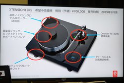同ブランドの中核シリーズ「X-LINE」の最上位機種に位置づけられるモデルで、日本発売にあたっては、特別仕様として、長年協力関係にあるオルトフォンのトーンアーム「RS-309D」を搭載。RS-309Dは、12インチ(有効長:311mm/SPU仕様時315mm)のダイナミックバランス型・ロングトーンアームとなる。オーバーハングは15mmで、針圧調整範囲は0-5g、対応カートリッジ重量はシェル込で18-40gとなっている。また質量は731g。本国ではストレート型トーンアームが採用されているが、日本ではカートリッジ変更の需要も踏まえ、本来オプションとなっているRS-309Dを標準搭載したという。