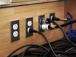 一方で、住宅の100Vコンセントを改造するには電気工事士の資格や、場合によっては電力会社への届け出も必要だったりと、ブラックボックスとなっていることにも触れ、「オーディオルーム造りには、100V電源の検討は欠かせない重要事項です。オーディオルームの100Vのコンセントはどう考えるべきなのか,蔵前モデルルームを例にして考えます」としている。