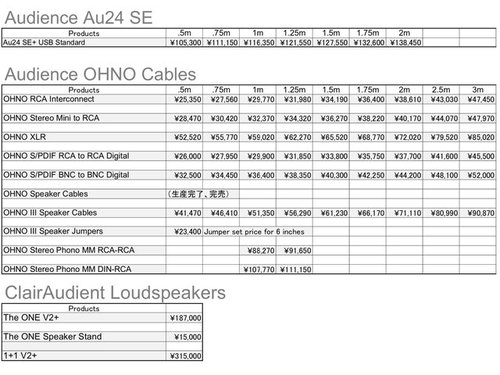 価格改定の理由について、同社では「メーカー出荷価格上昇」のためと説明。対象となる製品は、「Au24 SX」「Au24 SE」「OHNO Cables」といったケーブルシリーズと、スピーカー「The ONE V2+」「1+1 V2+」などとなっている。