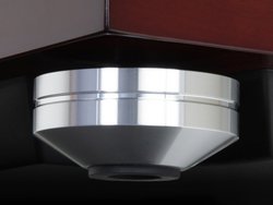 筐体のコア材は高密度MDFで、プラッターは直径30cmのアルミダイカスト製。速度は45、33-1/3の2種類に対応し、EPとLPの再生に対応する。プラッターの外周部にベルトを掛けて回転させる外掛け式ベルトドライブを採用することで、DCモーターのコギングがプラッターの回転に与える影響を最小限にし、より滑らかで高精度な回転を図ったという。インシュレーターはアルミ削り出しの金属製シェルを採用し、ラバークッションを介して筐体に固定する構造を採る。
