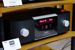 ガラス棟6FのG608にブースを構えるハーマンインターナショナルでは、同社が取り扱うJBL、Mark Levinson、REVELブランドの製品を用いた試聴デモを実施。なかでも注目は、発表されたばかりの新製品であるMark Levinsonのプリメインアンプ「No5805」だ(レビュー記事)。