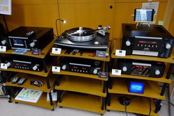 協同電子エンジニアリングはPhasemation(フェーズメーション)ブランドの製品を用いたオーディオシステムを構築。昨年末に発表され各オーディオイベントでも好評な、MC昇圧トランス内蔵フォノアンプ「EA-350」や、パッシブアッテネーター式コントローラー「CM-2000」なども用意し、大勢のアナログファンがその音に耳を傾けていた。