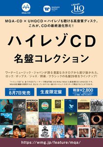 ワーナーミュージックは、「ハイレゾCD 名盤コレクション<完全生産限定盤>」を、8月7日より発売する。