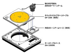 「お気に入りのトーンアームをメインアームとして使いたい」「SP-10Rと好きなトーンアームを組み合わせたい」という要望を受けて製品化されたもの。本製品に別売の「SP-10R」、別売のトーンアームベースを組み合わせることで、SL-1000Rのメインアーム位置に好みのトーンアームを使用できるようになる。