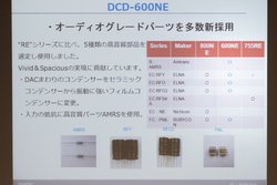 アナログオーディオ回路や電源回路には、フラグシップ「SX1」シリーズの技術を汲んだ高音質パーツ、山内氏が入念なテストを繰り返して開発したカスタムパーツを複数搭載。その種類や点数はDCD-755/PMA-390シリーズと比較して大幅に増えており、「生命感あふれる躍動的なサウンドと見通しの良い空間表現力」に貢献しているとのこと。