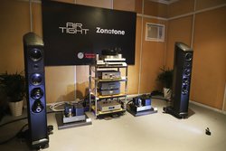 そのゾノトーンはエアタイトとともにブースを展開。エアタイトは国内未発売のカートリッジ「PC-1 coda」とともに、ミュンヘンでも発表されたモノラルパワーアンプ「ATM-2211」を展開。ミュンヘンで登場したものよりもさらに細部にブラッシュアップが施されているという。ケーブル類にゾノトーンを活用することはもちろん、電源ボックスにも「ZPS-6000」を活用するなどしてサウンドセッティングを行なっていた。