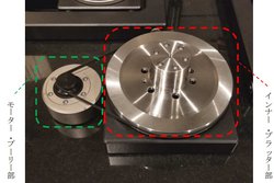 アウタープラッターの素材にはPOM材を使用し、上部と下部が分離された構造となっている。下部にはすり鉢状のくぼみを設け、大きめの超硬質可動ボールを配置。また上部には山状のくぼみを3つ設け、小さめの超硬質ボール状突起を配置する。この構造によって接触面積を抑えることで、レコードを載せる上部と、モーターの影響を受ける下部の干渉の低減を図っている。
