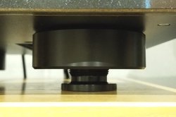 そのほかトーンアームの取り付け部にはアルマイト加工処理が施されたアルミニウムを採用。キャビネットの振動がトーンアームに伝わることを防ぐため、アウタープラッターと同様に超硬質ボール接点支持が用いられる。アームボードは可動式となっているため、9-12インチまでの多くのトーンアームに対応できる。