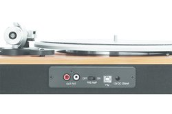 内蔵プリアンプは、側面のON/OFFスイッチで使用の切り替えが可能。端子は3.5mmヘッドホン出力、USB、RCA(Phono / Line)端子を搭載し、USB経由でPCと接続してレコード音源をデジタル化することも可能。